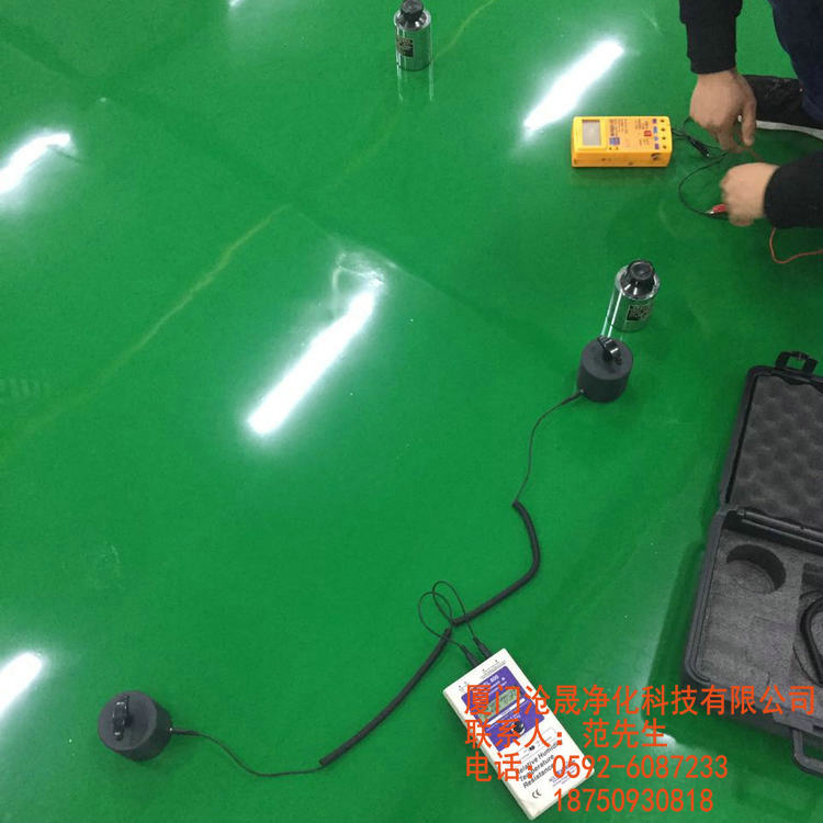 防靜電地坪漆驗(yàn)收測(cè)量前,用紗布將表面擦干凈,然后將室內(nèi)空調(diào)打開(kāi),放置電極前先用軟布條擦去地表面所有塵物,電極表面在放置前要用干凈的軟布條粘上異丙醇不少于70%水擦拭干凈。