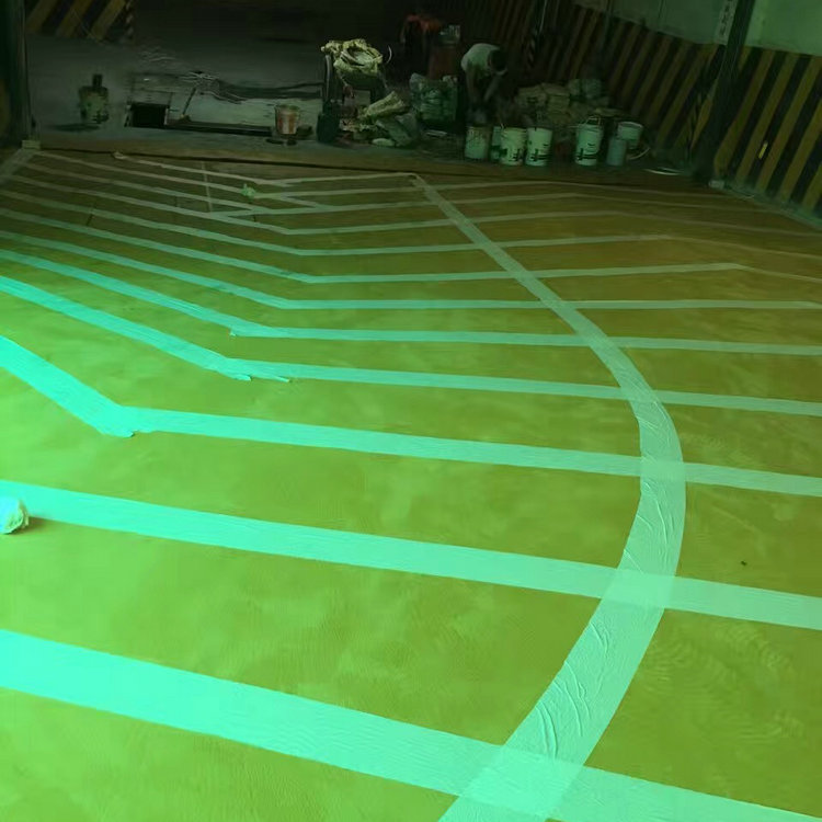 1. 鋪設(shè)底漆:將環(huán)氧樹脂滲透底漆A組份和B組份按一定比例(1:1)調(diào)配均勻滾涂做底層,封閉原素地表面之毛細(xì)孔,增強(qiáng)素地與漆層的接著力。 2. 刮涂環(huán)氧砂漿中間層:將環(huán)氧樹脂中涂地坪漆A組份和B組份按一定比例(4:1)調(diào)合攪勻,加入40-80目之石英砂調(diào)成環(huán)氧石英砂漿,刮涂環(huán)氧砂漿中間層。 3. 做止滑層:將A組份和B組份按一定比例(4:1)調(diào)合攪勻,用專用滾筒均勻滾涂一遍,均勻撒布止滑石英砂,待干后掃去多余之石英砂。 4. 彩色面漆滾涂:將A組份和B組份按一定比例(4:1)調(diào)合攪勻,用滾筒或噴涂均勻滾涂一遍。 地面鋪設(shè),減少了制作工序與時間,并能夠提高產(chǎn)品質(zhì)量,減少施工時間。